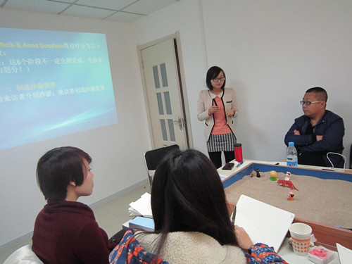 与以往培训不同,本次培训加入现场个人沙盘体验,让学员从来访者的角度真正去体验沙盘游戏的奇妙和感觉。作为来访者的张同学感慨道:“在和沙盘老师分享自己的沙画以后,原来才明白,摆放出来的不仅仅是一副沙画,更是自己的内心世界,包括自己的过去、现在及未来。”