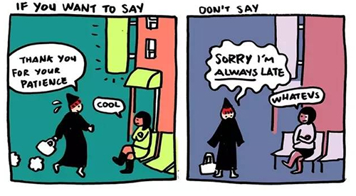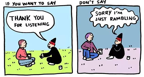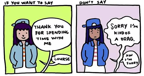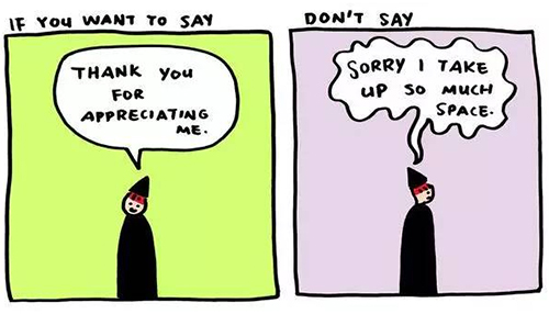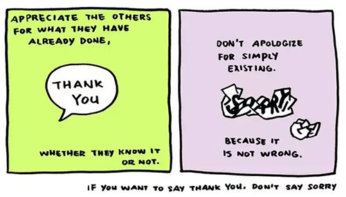 不要总是为已经发生或存在的事道歉。要学会感激别人所做的一切,不管他们意识没意识到。