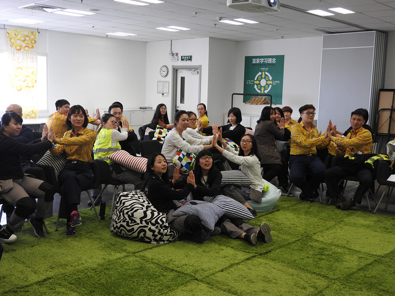 培训过程主要以现场罗列问题,现场答疑为主,其中有互动小游戏贯穿,帮助宜家家居的员工解读压力与情绪,同时传授压力管理的技巧。培训期间员工们积极参与游戏的互动与相关问题的反馈,轻松、愉悦的氛围始终围绕在老师与员工之间。