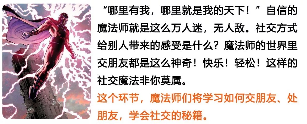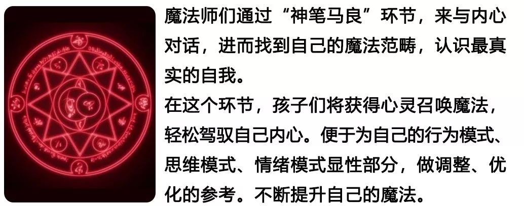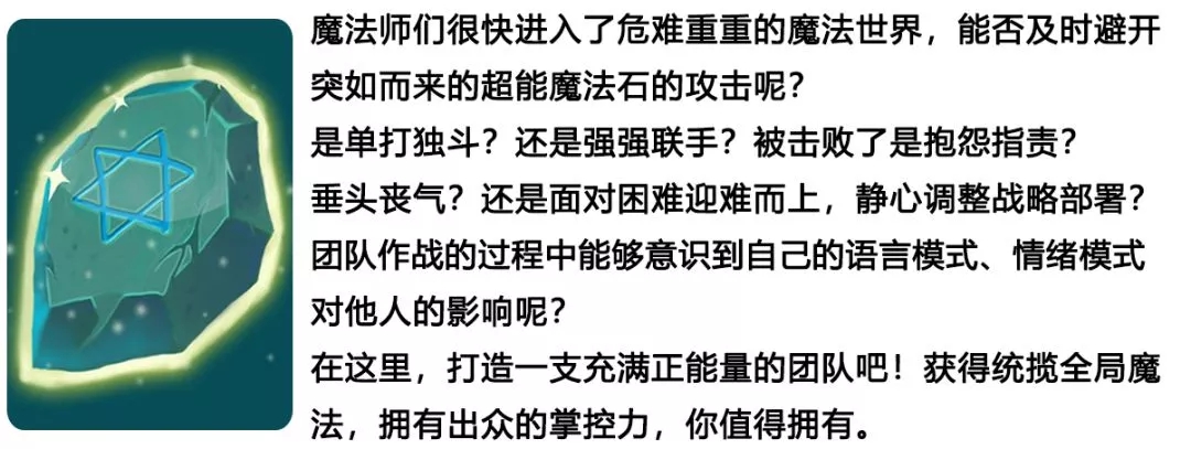 “心动力魔法学院”中,孩子们将“身附魔法”开启一段前所未有的神秘、曼妙、深刻、触动心灵的离奇旅途。与不同年龄的“魔法师”同舟共济,用各种神奇的魔法相互较量,优化提升孩子的社交方式和感受力。在众多魔法的学习、体验环节中,孩子们可提升斗志,认知并克服情绪障碍,正向面对问题,冷静处理解决。在每一次的战术总结分析中,不断优化提升自己,先思而后行,运筹帷幄,决胜英豪。