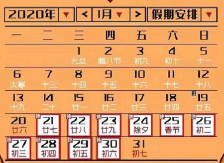 根据《国务院办公厅公布2020年春节放假安排》,结合公司实际情况,现将我公司春节放假安排如下: